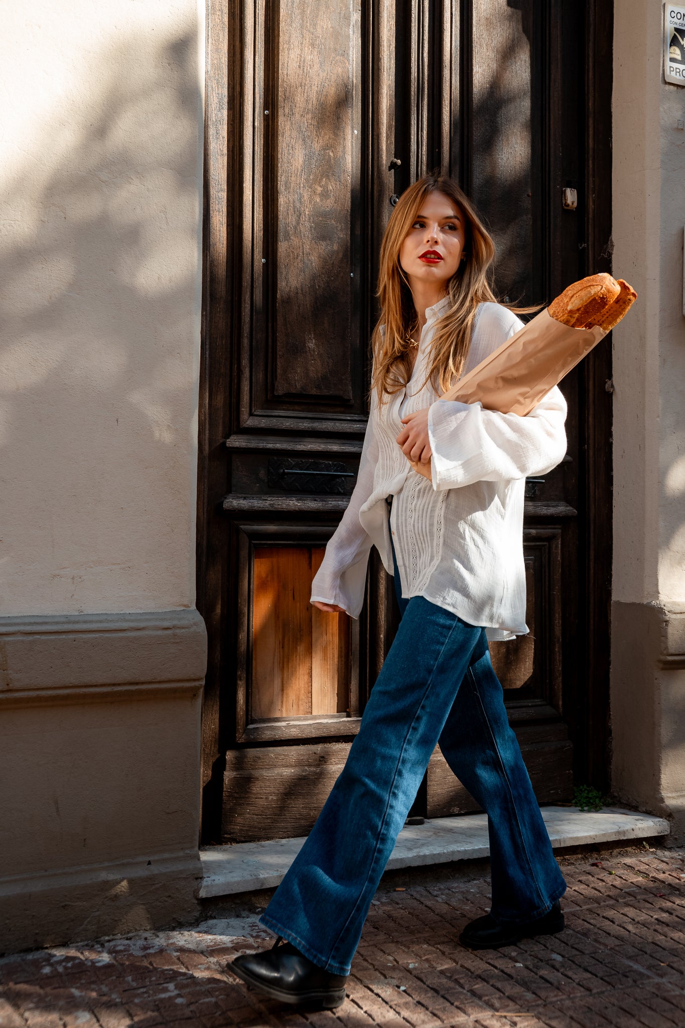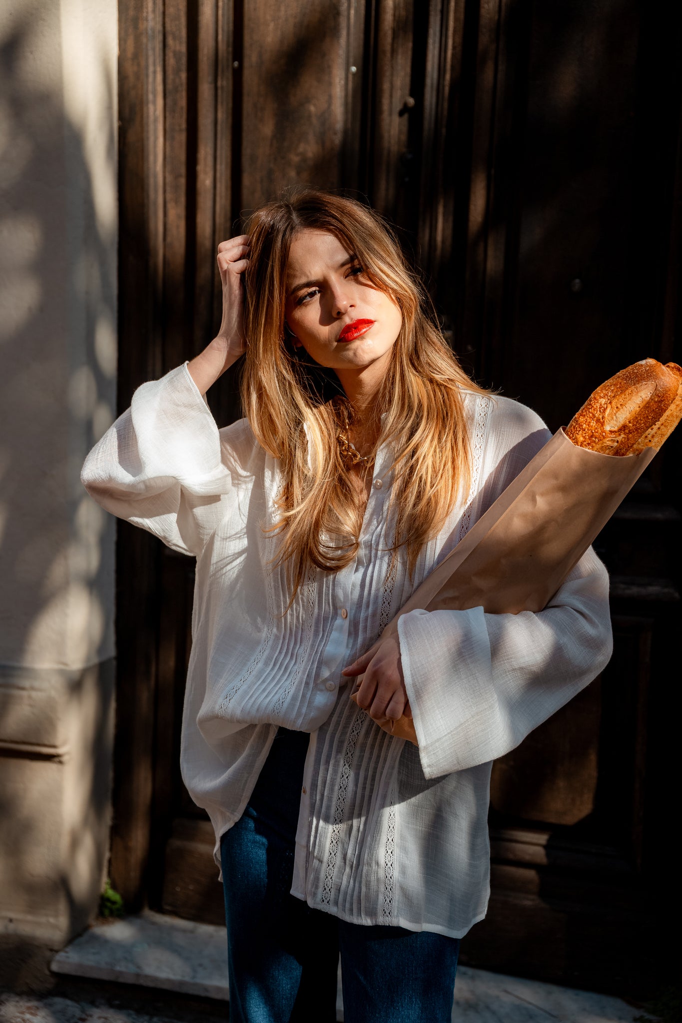 Camisa con detalles en broderie en la parte delantera y mangas anchas.