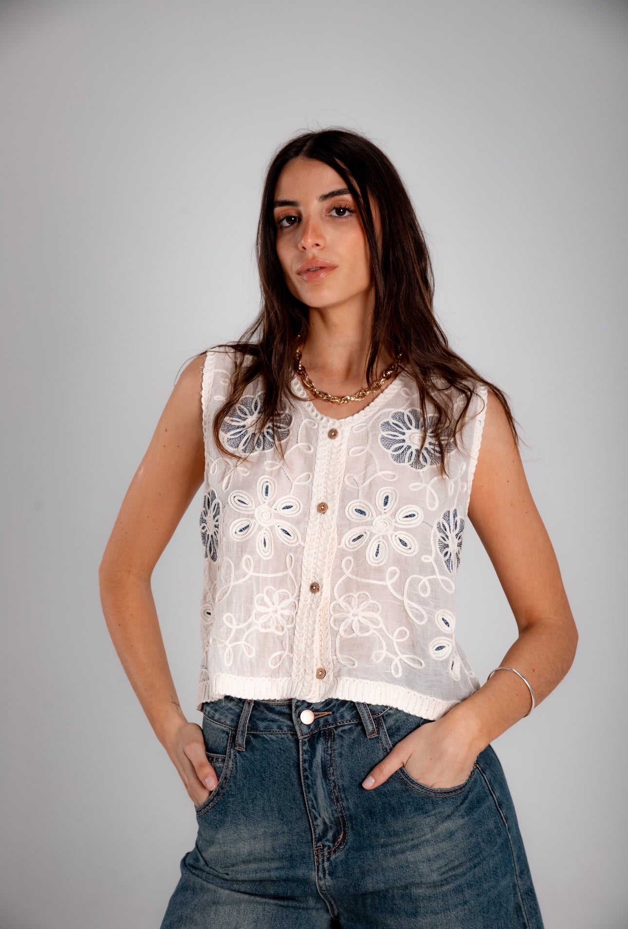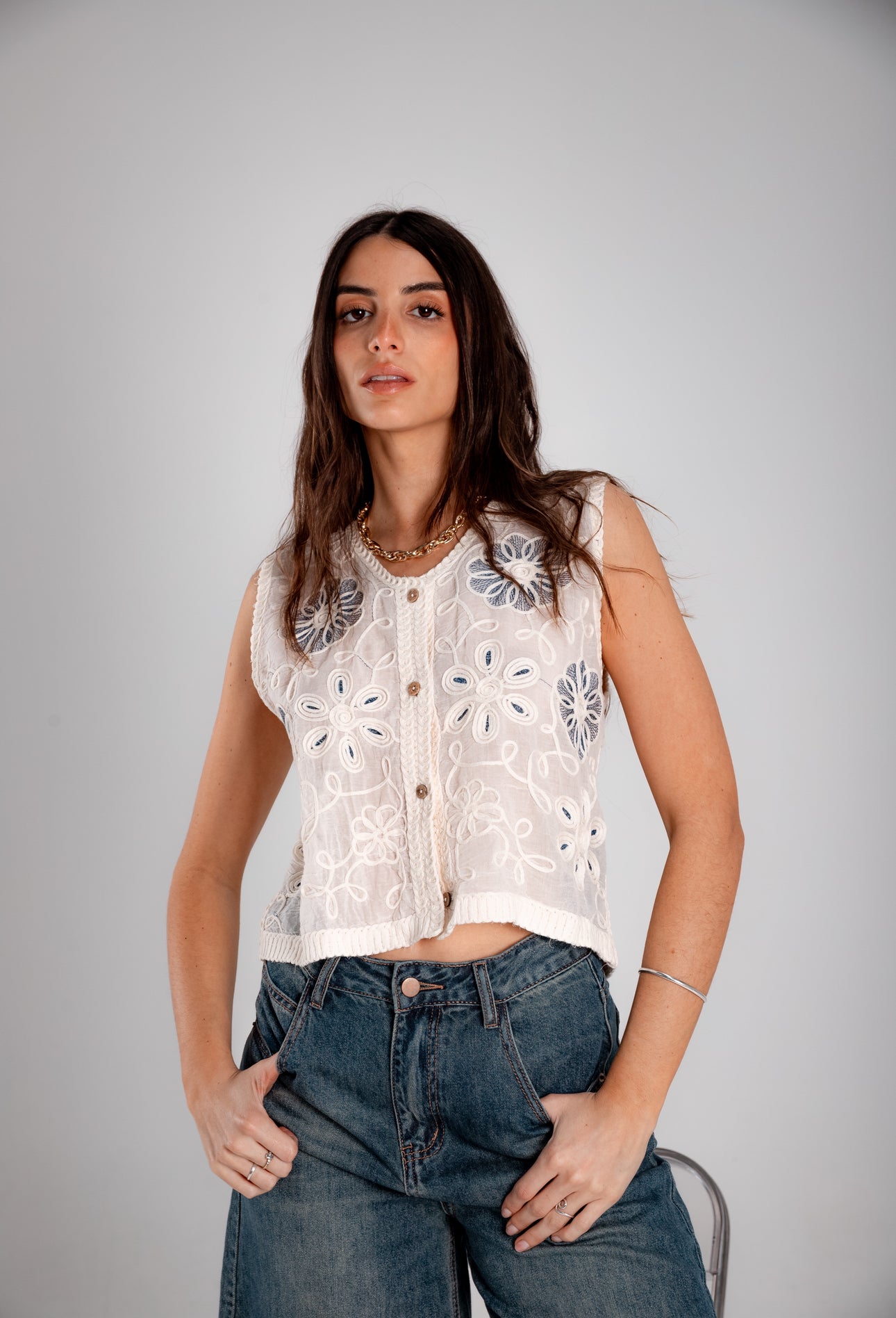 Chaleco bordado de crochet.